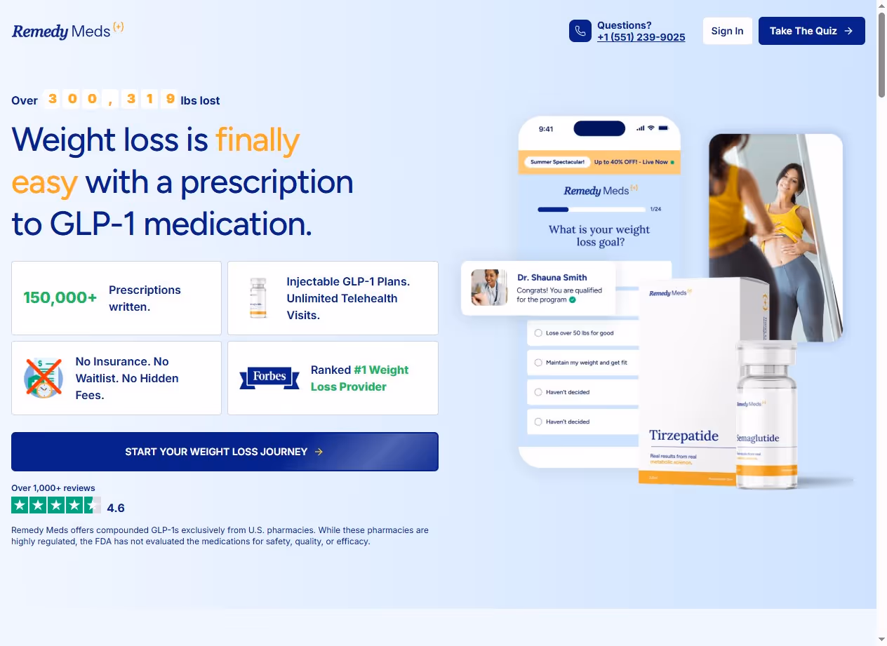 Remedy Meds offers both oral and injectable compounded semaglutide through their licensed health care provider network. Their comprehensive approach includes medical consultations and ongoing monitoring.