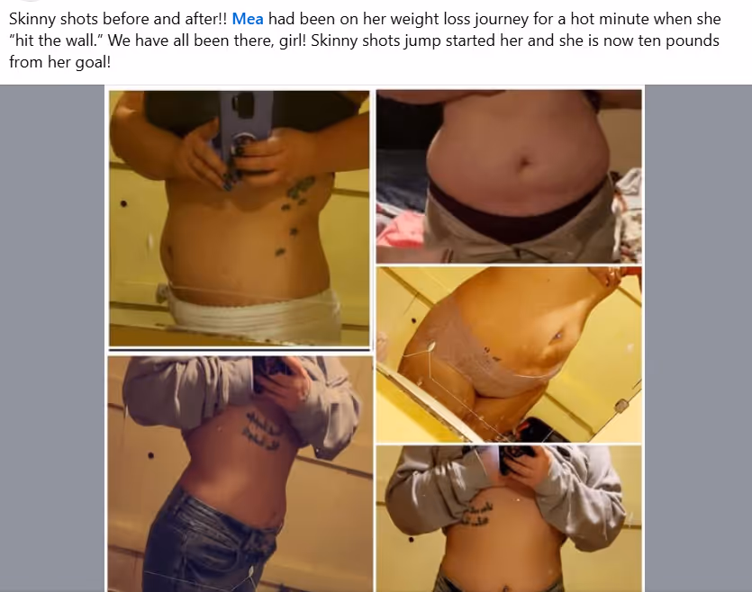 While another user on facebook reported that "Skinny shots jump started her and she is now ten pounds from her goal!"